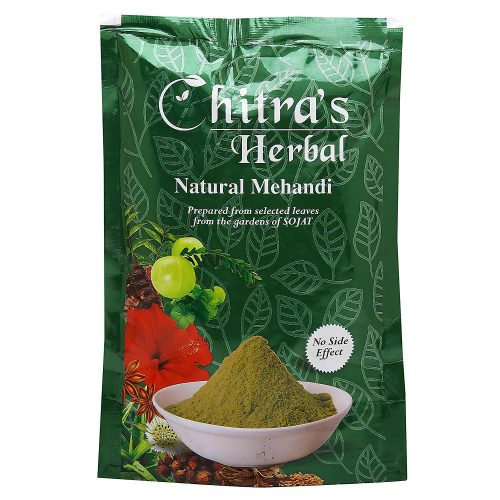 - Chitra’s herbal mehandi prepared from the mixture of various herbs which gives the hair shining and makes it soft, long and thick. It also prevents hair falling and dandruff.