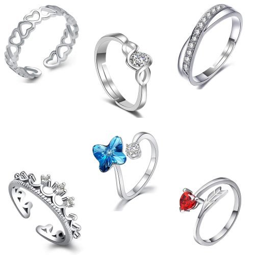 - Type : Valentine Partywear CZ and Crystal Finger Rings combo,Size : Adjustable.